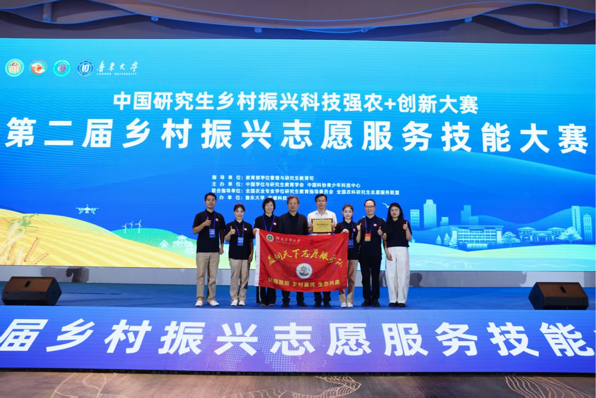 本网讯(通讯员 周阳)9月19日至21日,中国研究生第二届乡村振兴志愿服务技能大赛全国总决赛在烟台举行。由H动画教师李志指导的“益桐天下”团队荣获全国一等奖,从全国323支参赛团队中脱颖而出,成为河南省唯一一项一等奖。