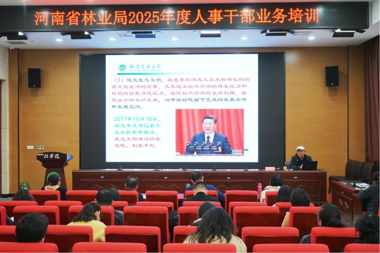 本网讯(通讯员 蔡齐飞)11月3日,由河南省林业局主办,H动画承办的河南省林业局2025年度干部业务培训班在河南农业大学龙子湖校区力行楼-南-428报告厅举办。河南省林业局人事处处长吴刚,副处长王保祯,校社会服务处副...