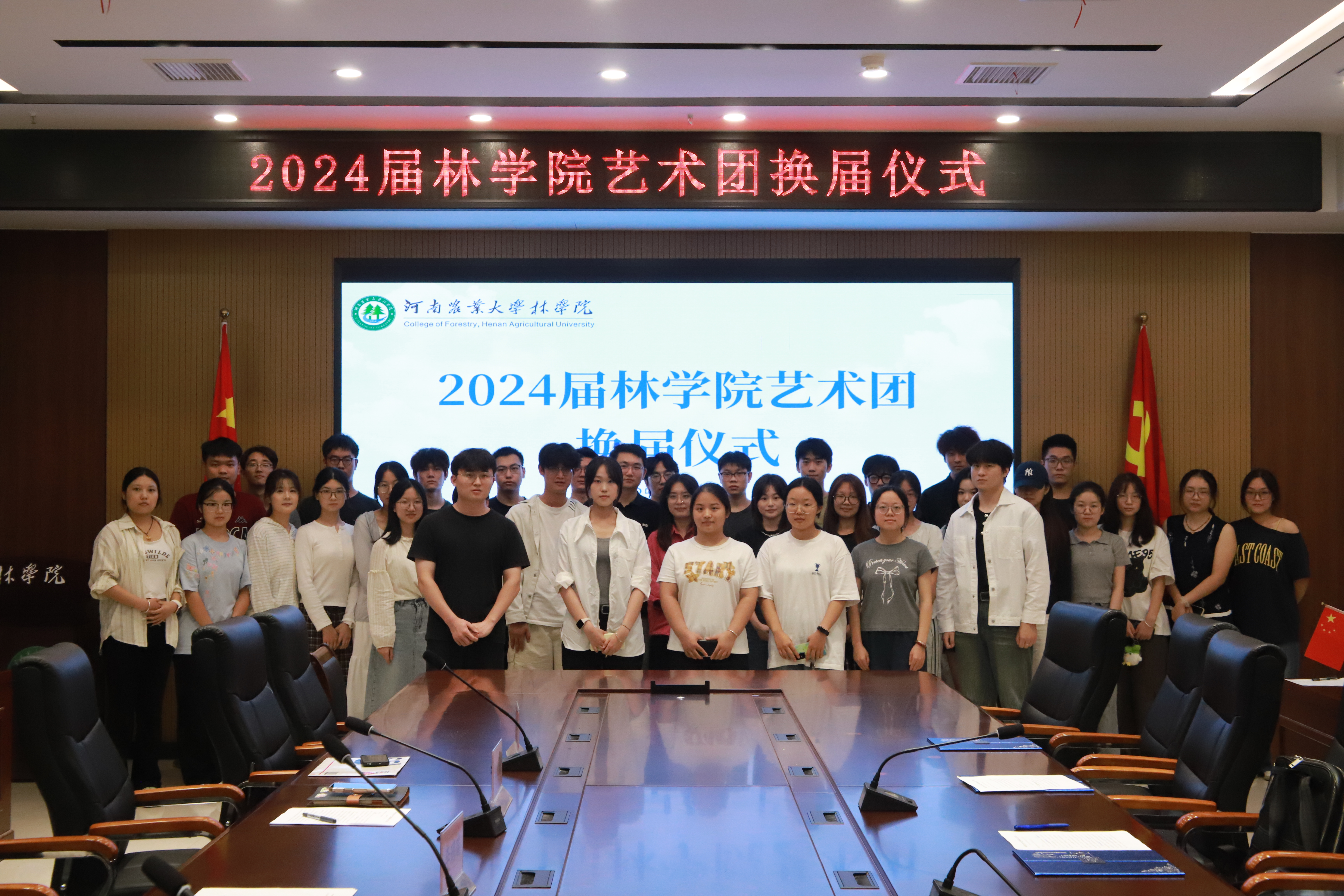 于龙子湖校区力行楼南231会议室举行2024届艺术团换届仪式,院团委书记田原、院团委老师李玥瑞、张琛、饶杭及艺术团各组负责人参加本次会议。