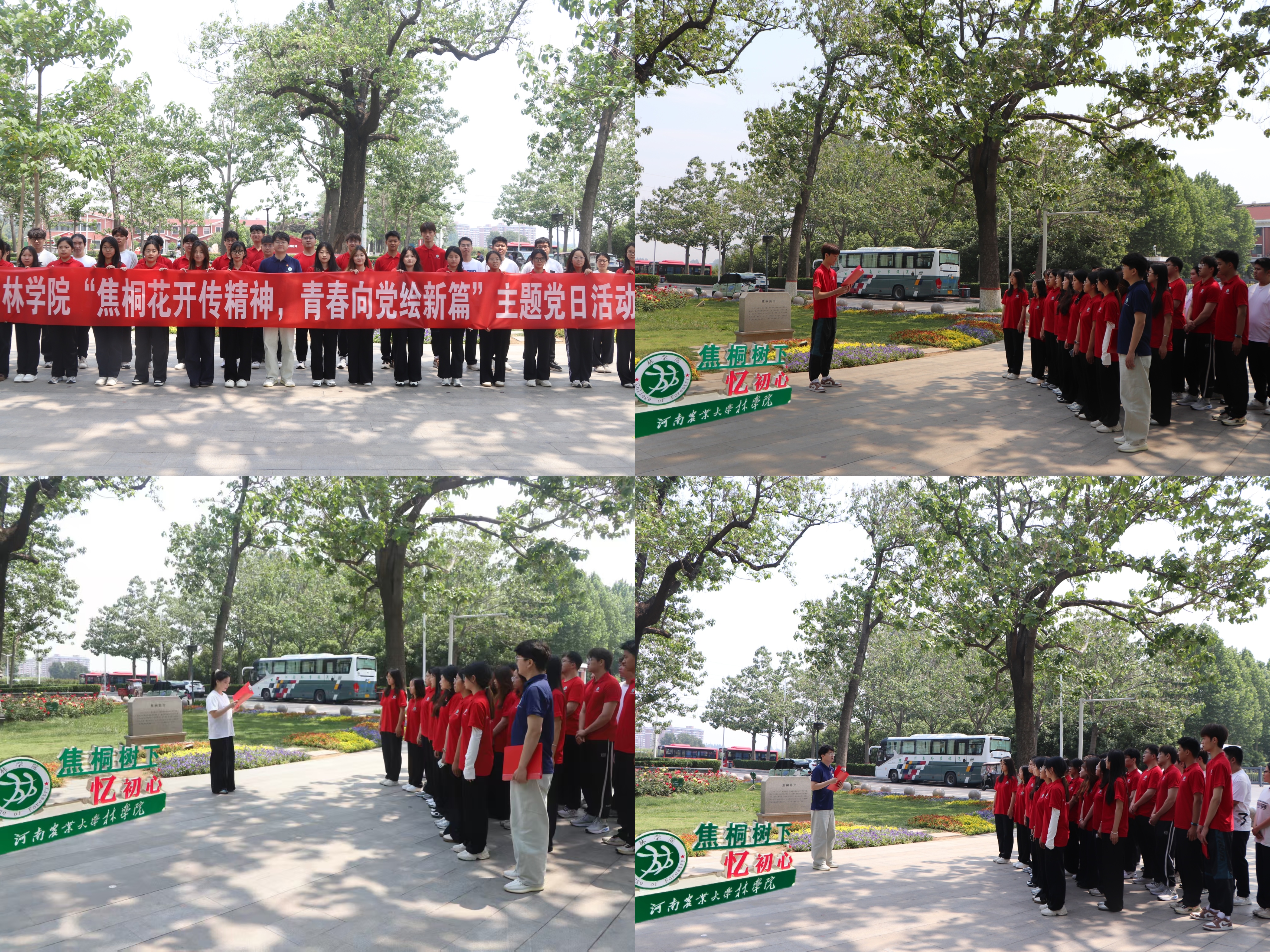 接着,师生一行前往焦桐广场举行“焦桐树下忆初心”主题党团日活动,院青马班学生代表王彦袭和院研究生代表袁秋芃依次发言,他们号召青年学子以焦裕禄精神为指引,将个人理想融入绿色事业,以实际行动践行青年担当。最后,马蒙恩以《又见泡桐花开,不止青绿》为题为大家讲授一节微团课,他强调作为一名新时代的农大学子,我们背负着强国兴农的伟大使命,在学校事业发展进入新阶段的重要时刻,我们要立足“我和我的农大”时代使命,厚植“五个一”家校情怀,积极参与到学校“双一流”创建、融合发展等工作中去,以实际行动传承和弘扬焦裕禄精神,把报国之志、兴农之愿转化为推动中国特色世界一流农业大学建设的实际行动。