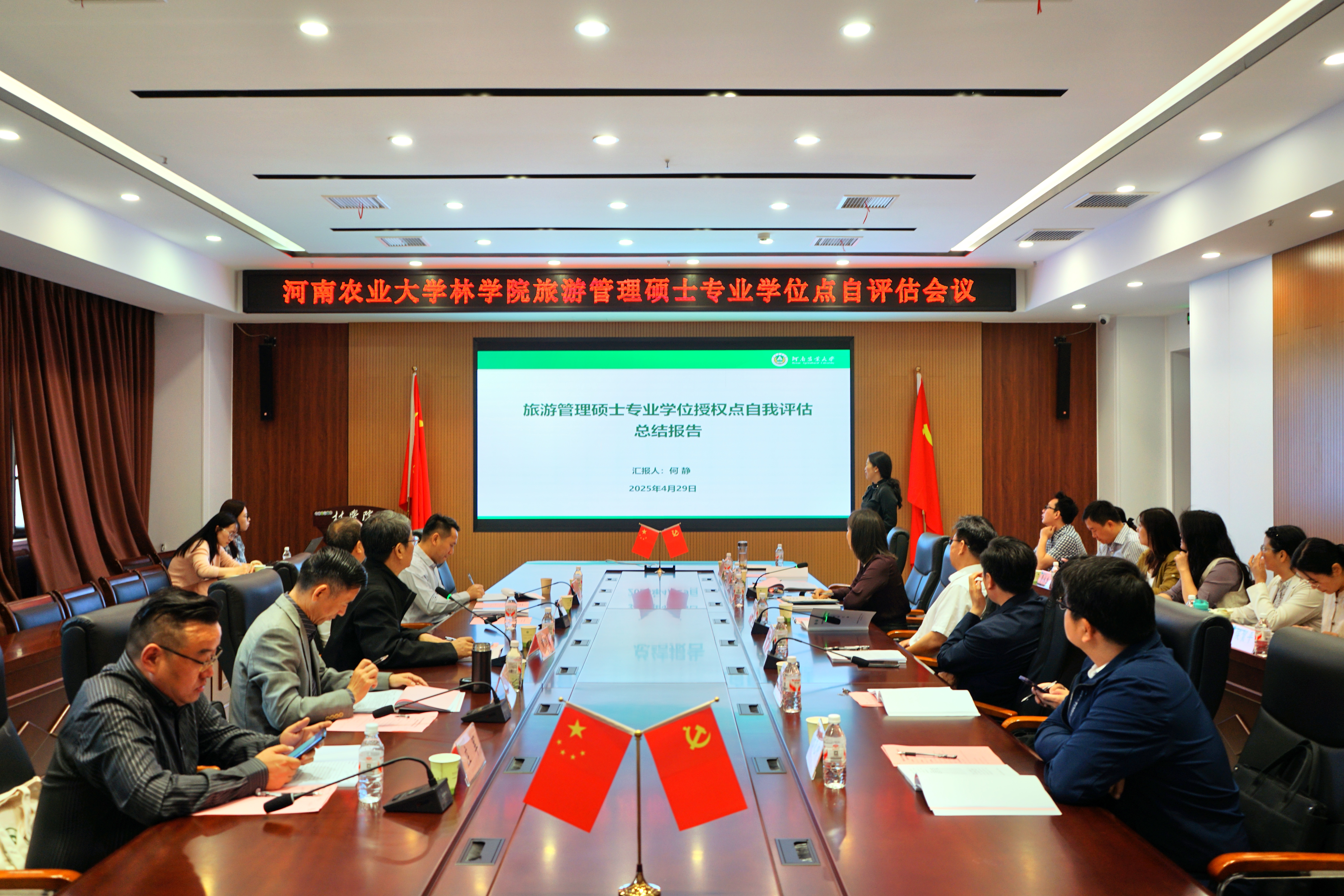 于2025年4月29日在力行楼231报告厅举行旅游管理硕士专业学位点自评估会议。南昌大学旅游研究院院长黄细嘉教授、中南财经政法大学邓爱民教授、河南大学文化与旅游学院院长程遂营教授、郑州大学饶品样教授受邀参加会议。校研究生院院长宋安东、研究生院学位办主任李振亚、院党委书记化青报、副院长李喜梅及旅游管理硕士学位点全体导师参加了会议。会议由李喜梅主持。