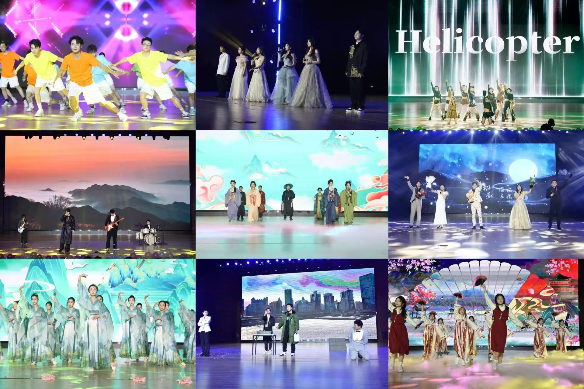 全体辅导员老师带来的歌曲《若是月亮还没来》描绘出人生旅途中的困顿与期待、孤独与坚守,激励大家永葆乐观和坚强;舞蹈《九歌》,演员们用优美的舞姿诠释了中国古代文化的博大精深;歌曲《心同此愿》通过描绘祖国的壮丽山河和人民的勤劳智慧,激发起听众的民族自豪感与归属感。活动现场高潮迭起,掌声不断,期间更有抽奖和弹幕等活动,与台下师生积极互动。