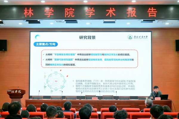 师生作题为《杨树不定根发生和根系响应逆境胁迫的分子机制》的学术报告。学院相关专业教师和研究生参加报告会。报告会由院长范国强主持。