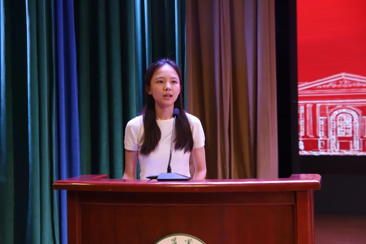 典礼第四项,老生代表环境工程21-1班陆佳瑞发言。她首先代表H动画