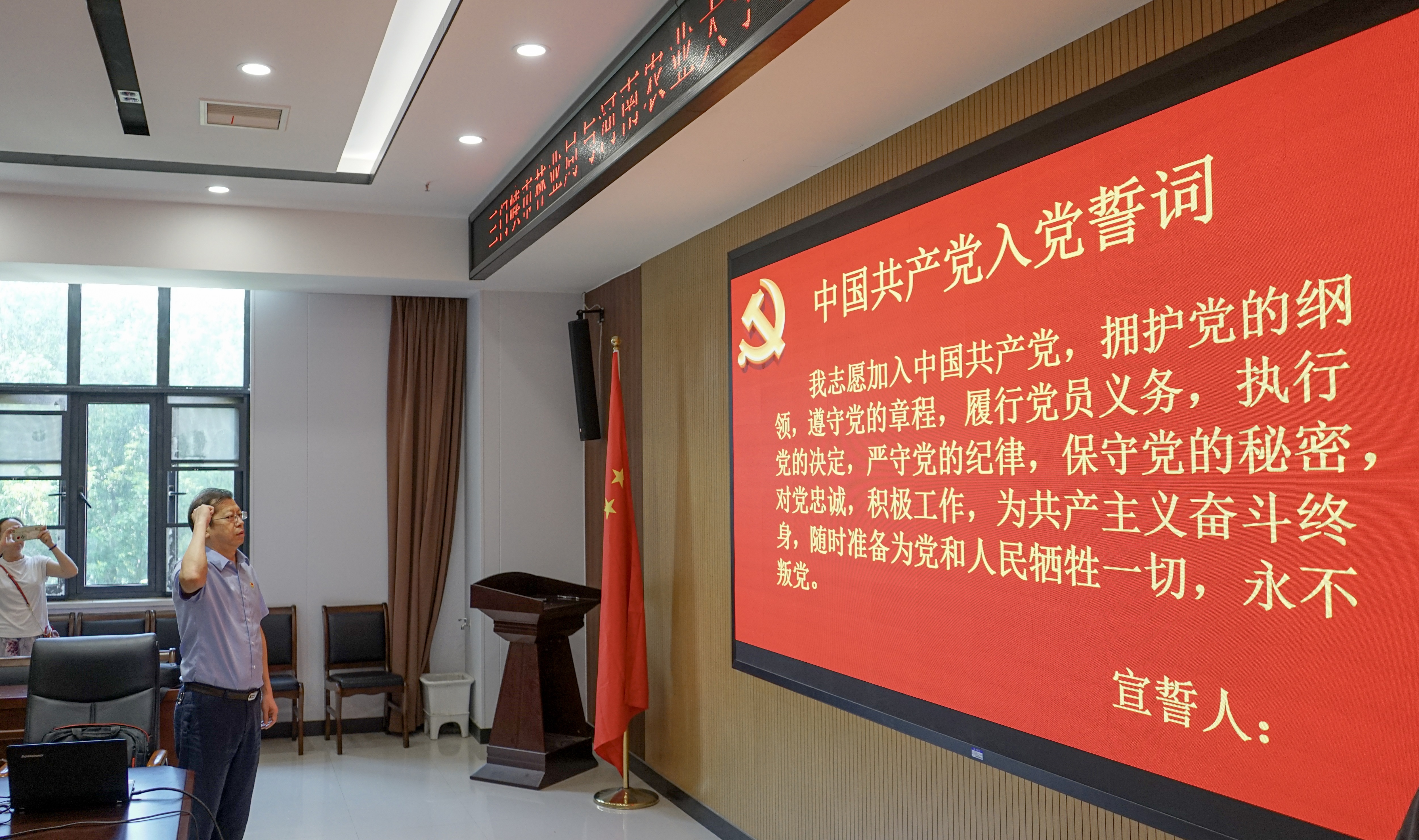 会议在庄严的国歌声中拉开帷幕。三门峡市林业局党组书记、局长杨伟兵带领与会党员重温入党誓词。