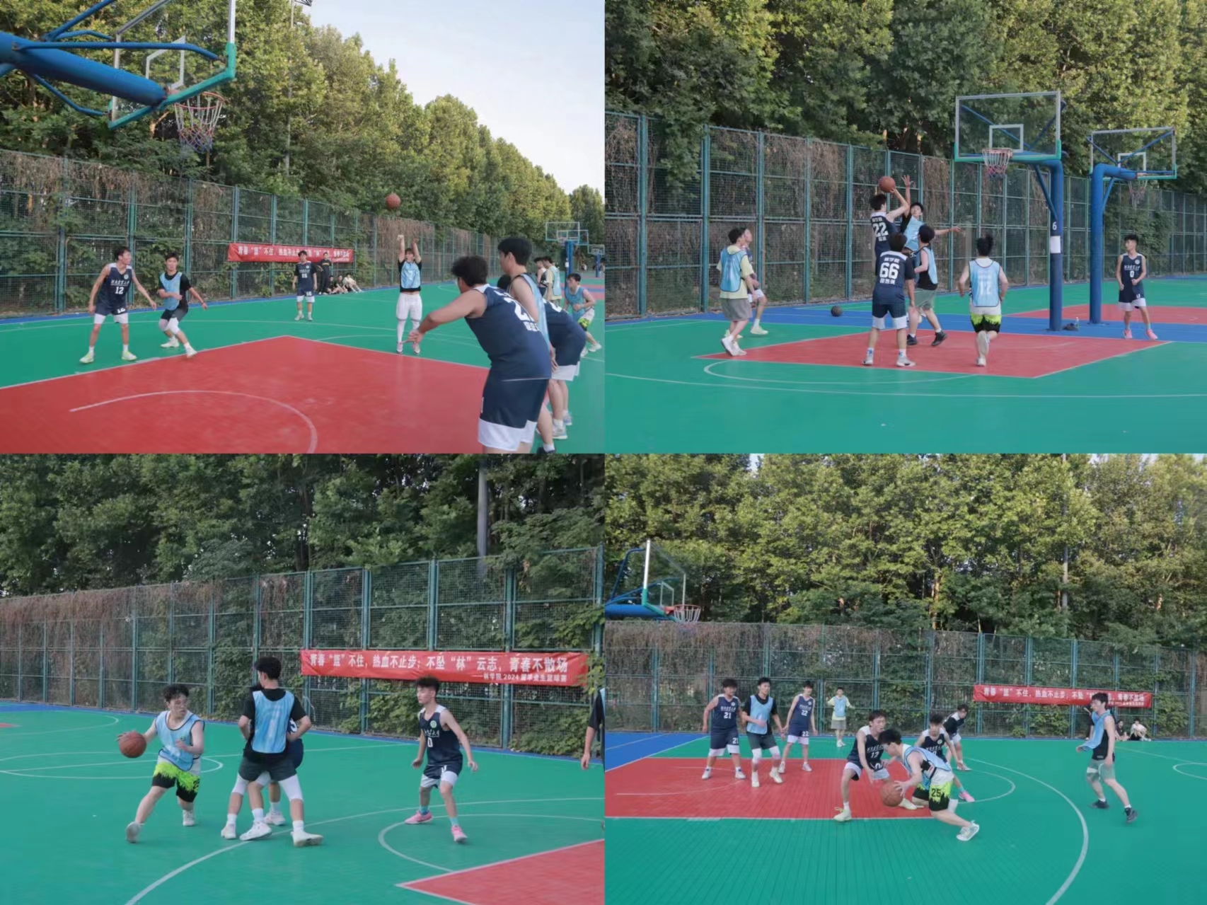 比赛在热烈的气氛中拉开帷幕。场上,队员们挥汗如雨,你争我夺,每一次进球都是青春热血的燃烧。场下,观众们的加油声、欢呼声此起彼伏,为比赛增添了更多激情。本次篮球赛不仅是对毕业生的一次深情告别,也是一次青春记忆的延续,为即将离开校园的毕业生们留下了美好的回忆。相信在未来的日子里,他们会带着母校的祝福和期望,勇往直前,创造出更加辉煌的成就!