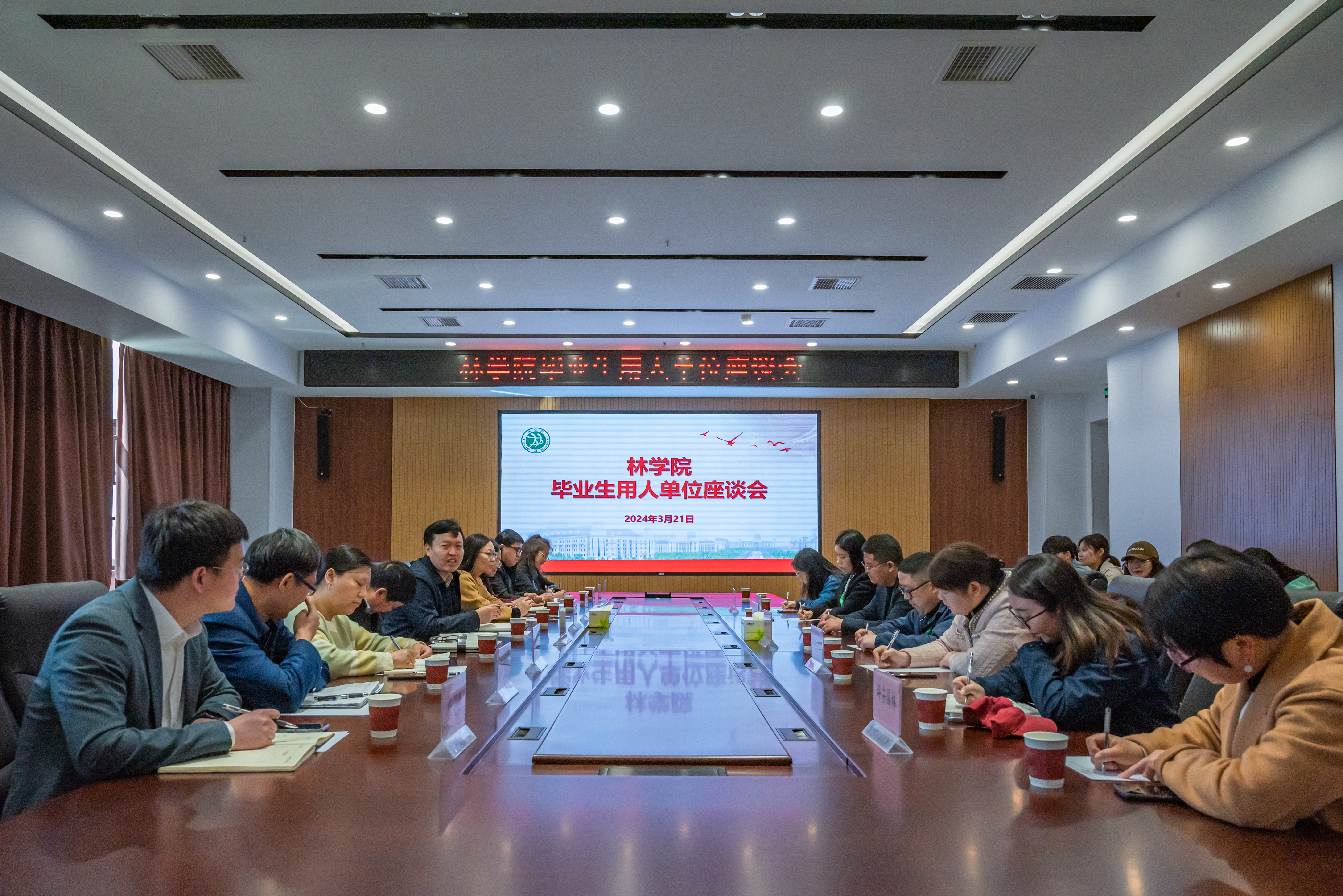3月21日,H动画 于龙子湖校区力行楼南231会议室举行毕业生用人单位座谈会。院领导班子、各系教学副主任以及河南创美农林生态发展有限公司、河南润友林业技术服务有限公司等6家相关行业企业代表共同出席本次会议,本次座谈会由院团委书记田原主持。