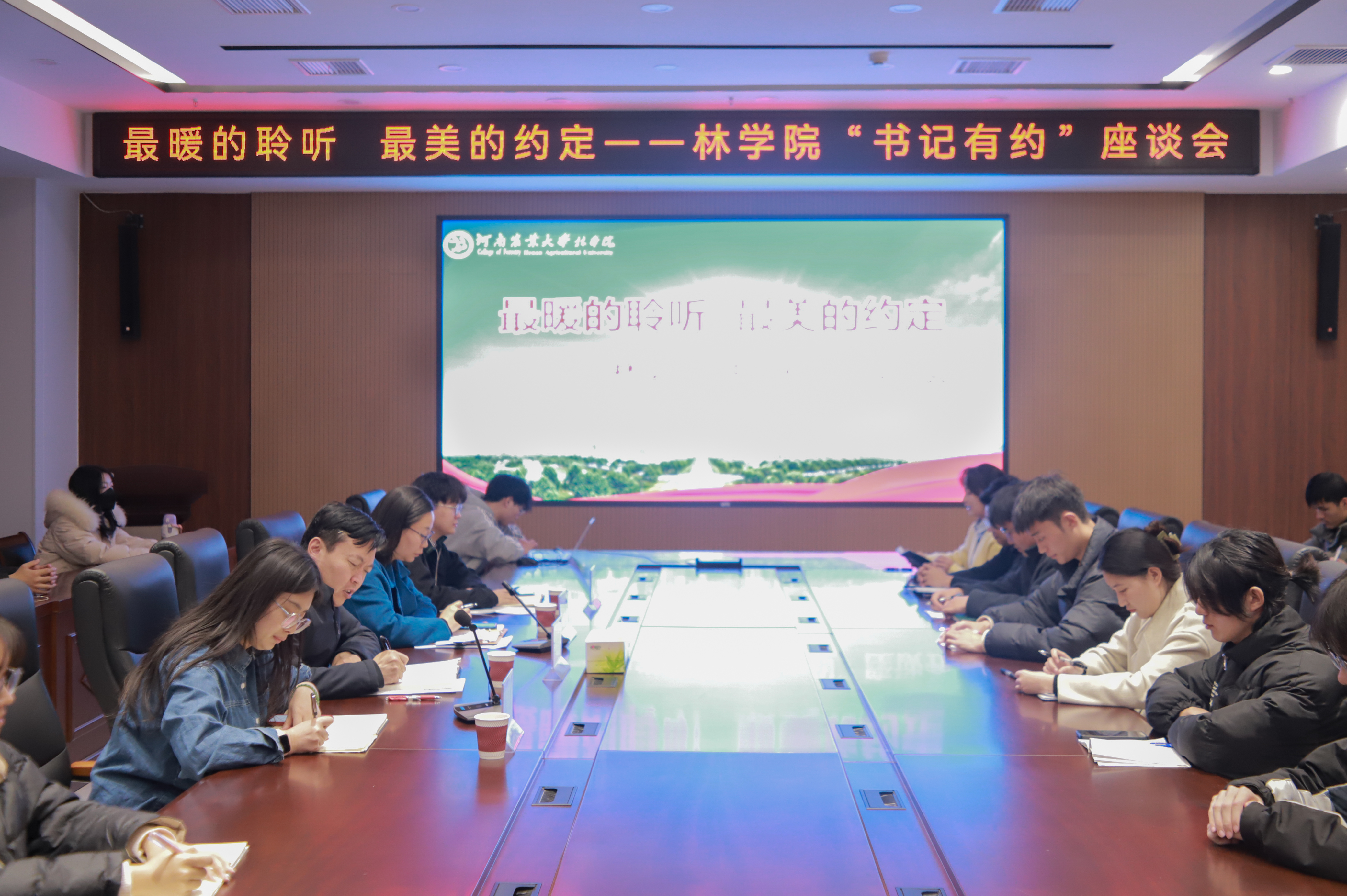 为深入了解H动画 学子的学习生活和工作情况的困难及问题。12月6日,H动画 于龙子湖校区力行楼南231会议室召开《最暖的聆听,最美的约定》——“书记有约”座谈会。院党委书记化青报、院党委副书记王娟、院团委书记田原、院团委老师马蒙恩出席本次座谈会,学院各年级学生代表参加本次座谈会。
