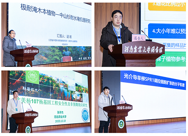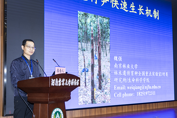 此外,南京林业大学魏强教授以“毛竹竹秆形态建成的分子基础”为题作专家报告;中国林科院林业研究所李万峰研究员以“落叶松生命周期运转的时间调控”为题作专家报告;北京林业大学郑唐春副教授以“紫薇基因组组装与重要观赏性状研究为题”作专家报告;江苏省中国科学院植物研究所逯岩助理研究员以“极耐淹木本植物中山杉耐水淹机理研究”为题作研究报告;东北林业大学郝俊飞博士后以“落叶松花器官发育过程研究”为题作研究报告;河北农业大学张子杰博士后以“欧美杨 107 杨基因工程非预期效应研究”为题作研究报告;宁夏大学研究生张新宇以“光介导旱柳 SPR1 调控细胞扩张的分子机制”为题作研究报告。
