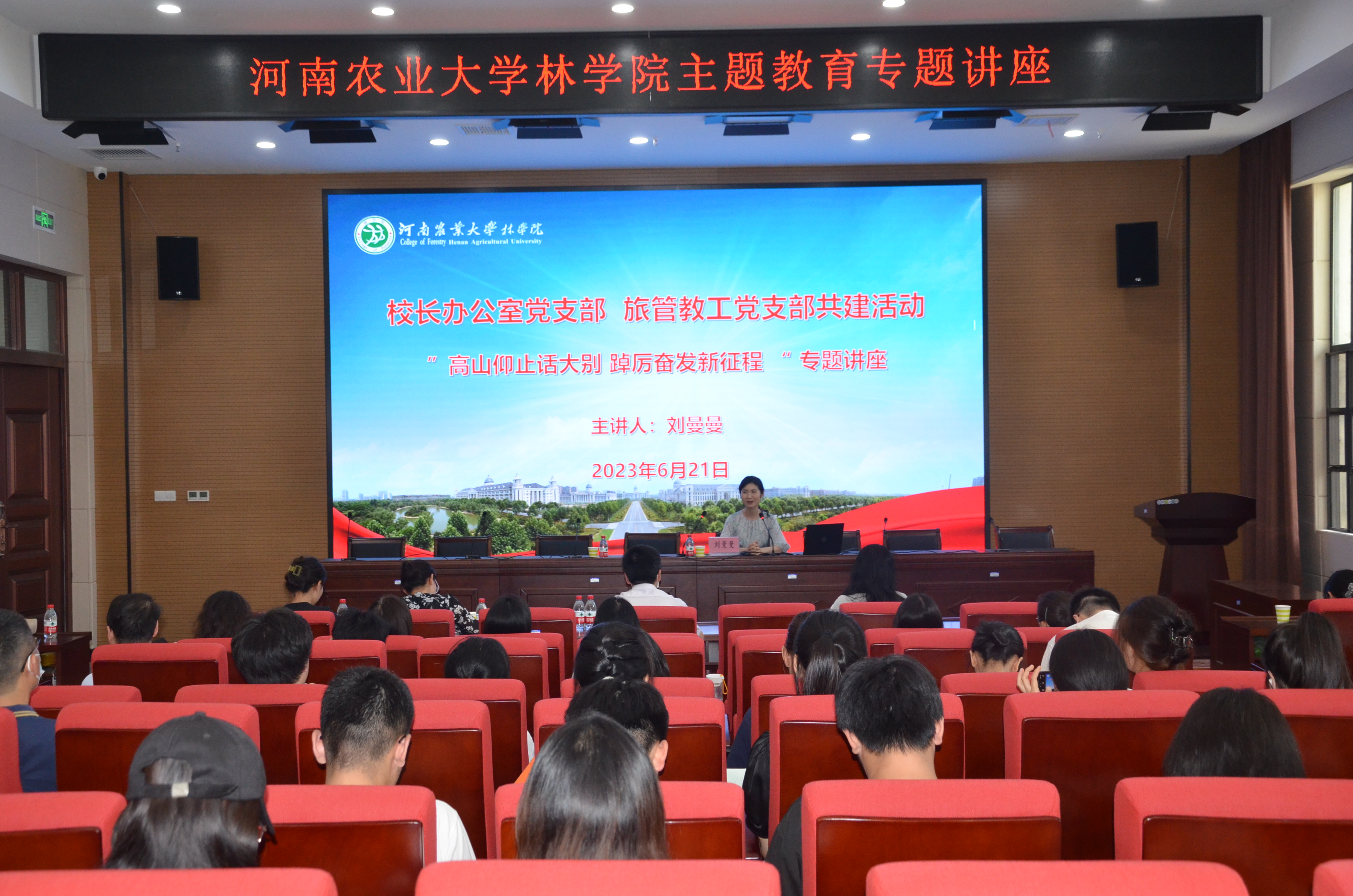 旅管系教工党支部和校办党支部联合组织,作为两个支部共建的重要活动,校办党支部相关负责人和党员代表,旅管系教工党支部全体党员及学院师生参加此次讲座。