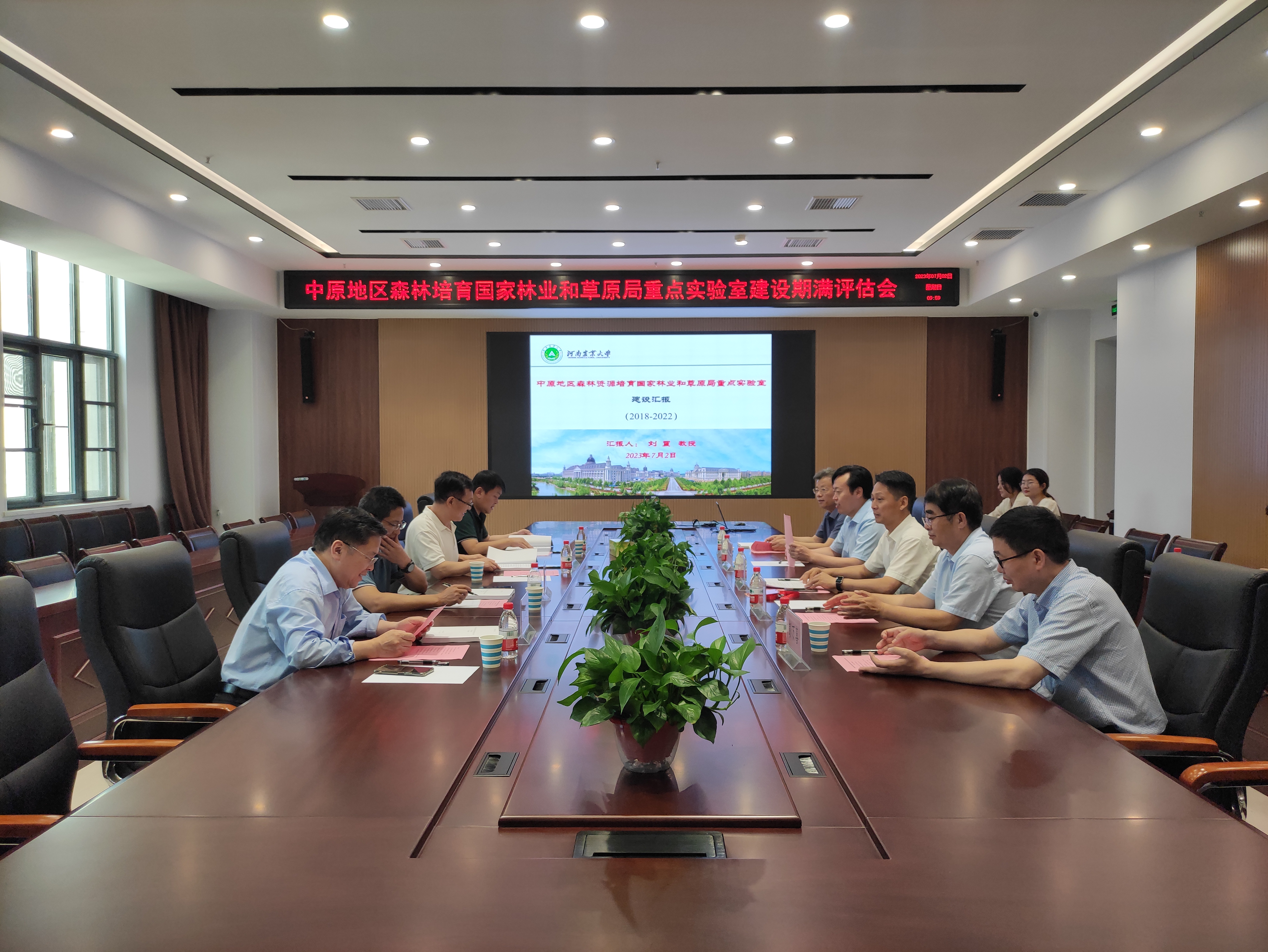 本网讯(通讯员 李志 图片 李志)7月2日,国家林业和草原局科技司组织清华大学生态修复研究中心主任李锋教授、南京林业大学科技处处长汪贵斌教授、西北农林科技大学科研院副院长赵西宁研究员等专家对我校牵头建设的中原地区森林资源培育国家林业和草原局重点实验室进行现场考察和评审。评审会由河南省林业局科技处处长杨朝兴主持,副校长刘晓永出席会议并讲话。科技处处长杨青华,院党委书记化青报、副院长彭万喜、重点实验室主任刘震及部分骨干代表参加了考察和评审。