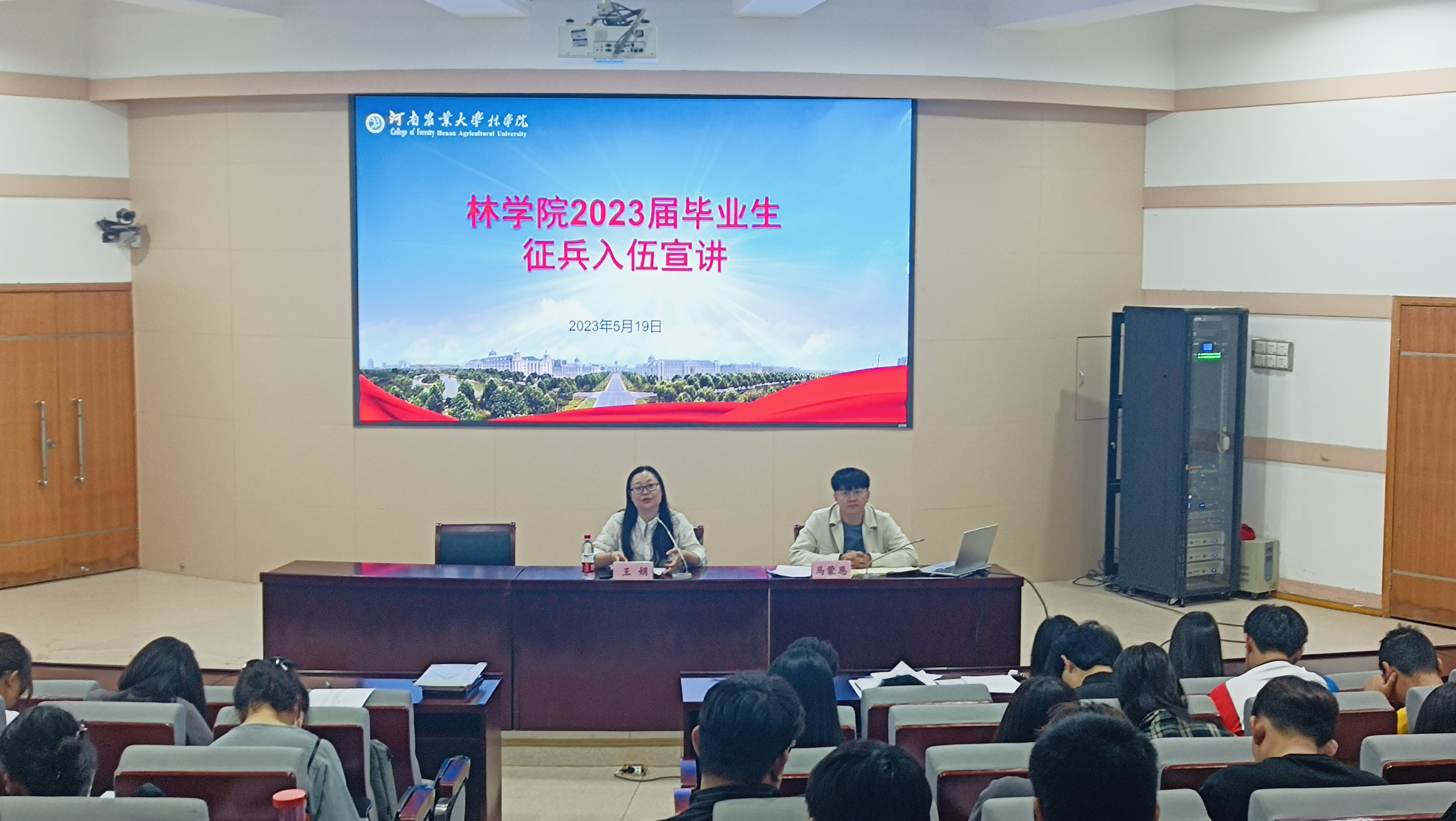 为积极响应国家征兵政策,鼓励更多学生投身军营,在强军征程中成长成才。5月19日,H动画 于文化路校区300人报告厅召开征兵工作动员会,院党委副书记王娟、院团委书记田原、院团委老师马蒙恩出席本次会议,2023届全体毕业生参加本次会议。会议由田原主持。