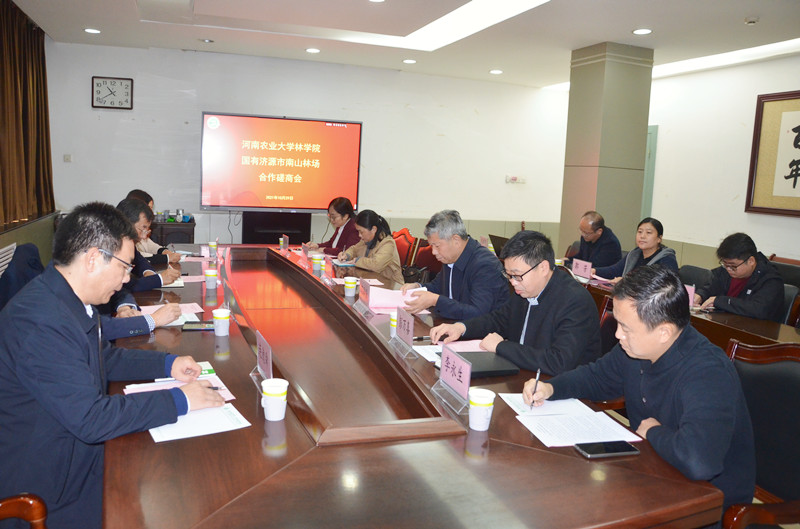 10月29日上午,济源示范区林业局党组书记、局长刘建军,国有济源南山林场场长卢战平,副场长连德舜,济源市林业科学研究所所长李剑侠来院协商合作事宜。院长范国强、校社会服务处副处长王春丽、副院长彭万喜、张学芳出席会议。学院办公室、基地办、林学系、生态系等相关老师参加会议。会议由副院长彭万喜主持。