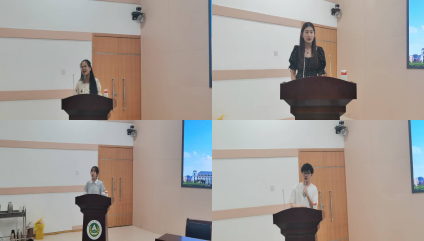 会上,赫倚风分别对曹莹莹、杨雨哲、王亚会、刘梓暄四名优秀毕业生作出介绍。四名优秀毕业生就自己大学四年的学习和生活向同学们分享了自己的收获与经验。曹莹莹对不同的年级提出了不同的建议,希望大家可以不虚度光阴,脚踏实地,走好人生的每一步。杨雨哲从学习、课外生活和心态上进行经验分享,希望同学们勇克困难,坚定前行。王亚会对自己的学习、工作和社会实践做出总结,希望大家多与图书馆为伴,坚定内心,奔赴自己想要去的地方。刘梓暄对自己在大学时期思想和学习上的变化作出分享,鼓励大家笃定前行、行稳致远。