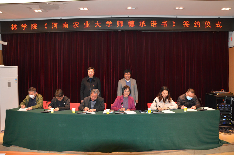 接着,学院领导班子成员、各系主任、党支部书记和青年教师代表依次在承诺书上签字,全院教职工均在会场签订了《师德承诺书》。