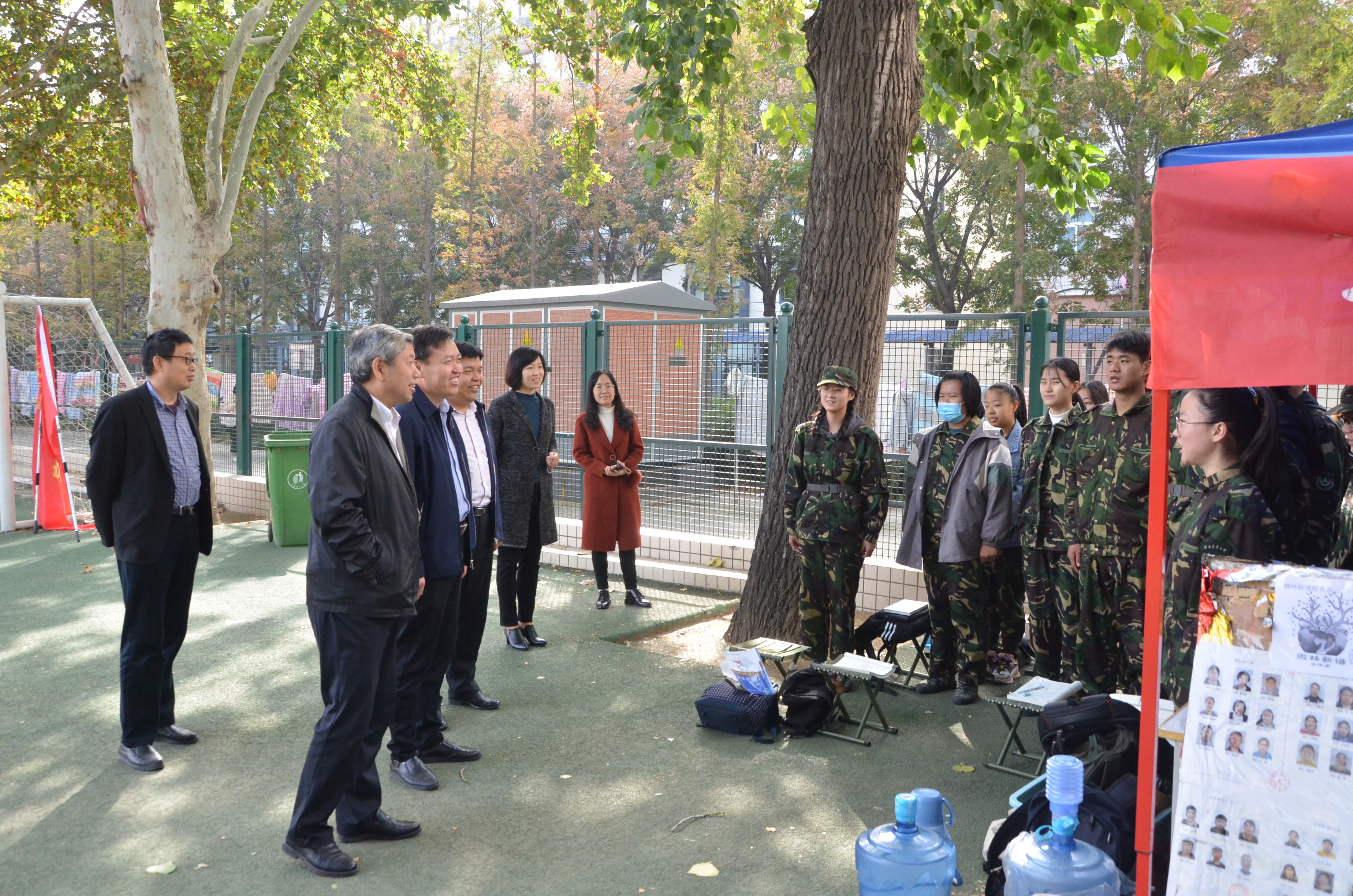 10月22日,H动画 党委书记化青报、院长范国强、院党委副书记李兴旺、副院长彭万喜、副院长张学芳、副院长李喜梅、院团委老师田原等对2020级军训新生及教官进行看望和慰问。