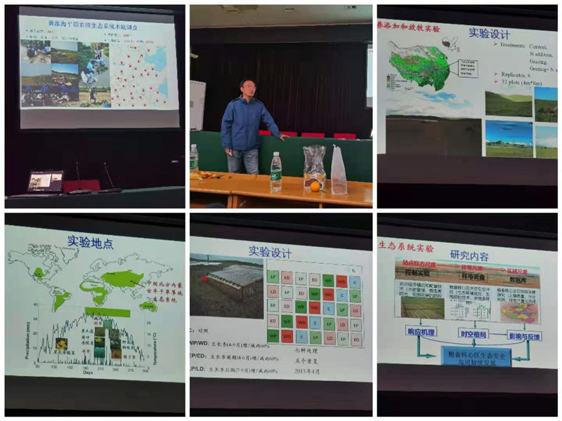 四楼报告厅给大家带来了精彩报告,涉及我国内蒙古典型草原、青藏高原以及农田生态系统对全球气候变化的响应,研究从植物个体生理生态,到群落多样性动态和生态系统功能,内容十分广泛、生动和深刻,给与会的老师和研究生留下了深刻印象。河大学者做学术报告过程中与H动画