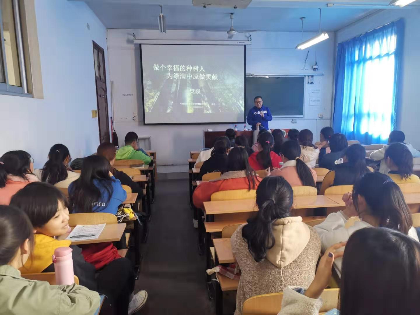 11月19日下午,河南省林业科学研究院樊巍研究员为H动画 林学专业师生做了题为“做个幸福的种树人,为绿满中原做贡献”的报告。