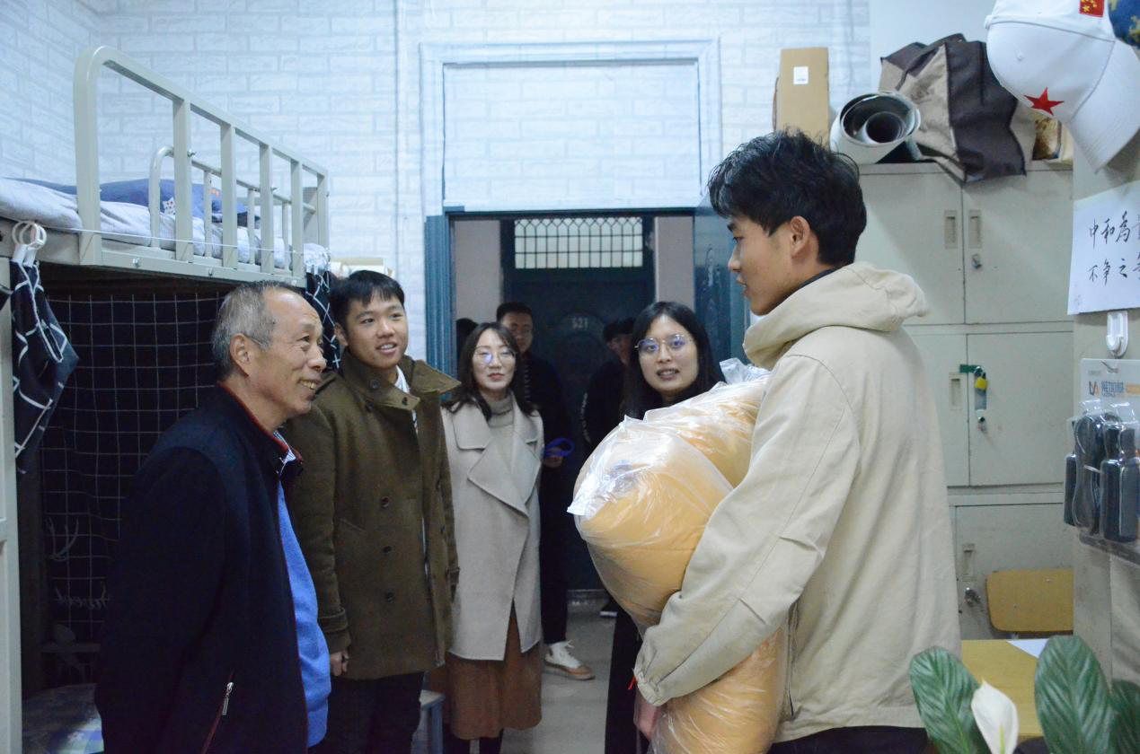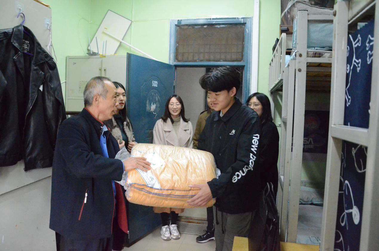 在送温暖活动中,老师们来到5号楼学生宿舍,为学生送上过冬棉被,让学生在这个冬季感受到来自学院的殷殷关切。各老师首先向学生宣讲党的十九届四中全会精神和省委书记王国生到我校与师生座谈时讲话精神,并衷心希望同学们能够真正领会十九届四中全会和王国生书记来我校讲话精神内涵,做社会主义合格建设者和可靠接班人。每到一间宿舍,H动画 领导老师与学生亲切交流,了解学生的学习和生活状况,勉励大家珍惜当下,不负青春,开拓进取,成长成才。对于来自省外的学生,学院领导更是关怀备至,嘱咐辅导员老师多关注他们的生活学习,提供必要的帮助。同学们纷纷表示会将温暖化为激励,将感动化作行动,刻苦学习专业知识,提升综合素质,用实际行动回报学院培养之恩。