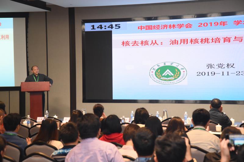 11月23日至24日,中国林学会经济林分会2019年学术年会在郑州召开。会议由中国林学会经济林分会主办,国家林业和草原局泡桐研究开发中心承办,H动画 协办。中国林学会副秘书长沈瑾兰、中国林科院副院长孟平、中国林学会经济林分会理事长谭晓风、国家林业和草原局林改司调研员高均凯等出席会议。来自全国各省的259名代表参加了会议。 大会共组织45场学术报告,代表们结合经济林的科研进展和生产实际,紧密围绕大会主题“经济林产业高质量发展”的热点、难点和重点问题,广泛而深入地开展了学术研讨和经验交流。H动画 3名教师做了主题报告、4名研究生做了“研究生论坛”专题报告,主题报告分别是刘震教授的“山桐子资源开发利用前景”、张党权教授的“核去核从:油用核桃培育与加工利用”、李继东副教授的“基于多组学技术枣疯病发生机理研究”。 经济林是我国林业产业中的重要方向,2017年由张党权教授牵头在H动画 林学一级学科下建设经济林学科方向,并积极申请与建设经济林本科专业,为河南及全国经济林产业发展提供科技和人才支撑。