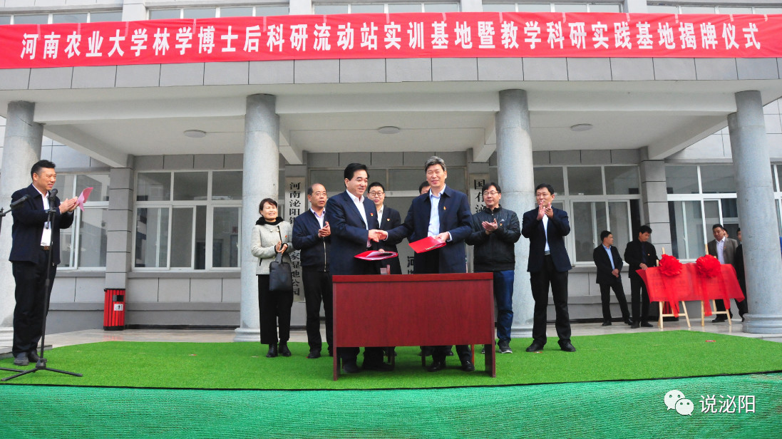 教学科研实践实习基地和林学博士后科研流动站实训基地在泌阳揭牌,是泌阳县招才引智、推进创新发展的重要成果,为泌阳生态文明建设提供有力的人才智力支撑。