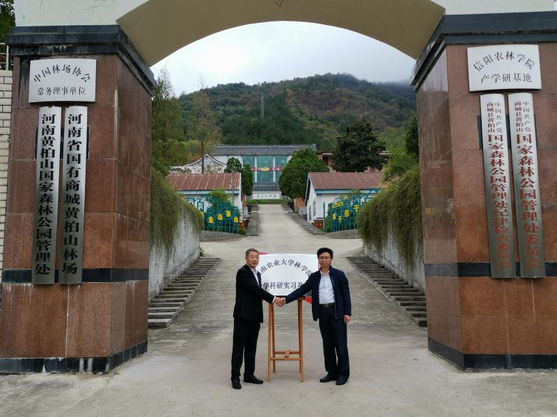 教学科研实习基地”在黄柏山国家森林公园举行挂牌仪式。院党委书记郑东方和商城县黄柏山国家森林公园管理处主任、黄柏山林场场长纪道宝共同为基地揭牌。H动画