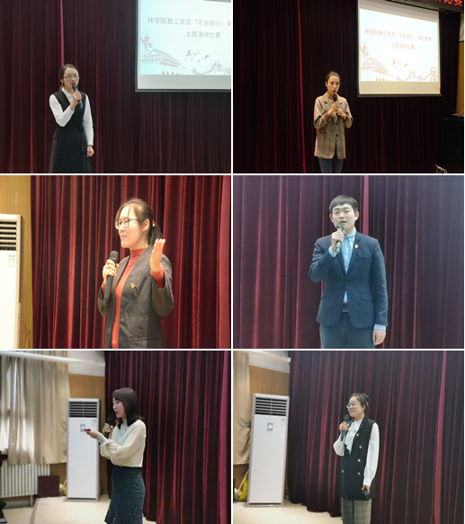 比赛现场,来自各教工党支部的18位选手紧紧围绕“不忘初心,牢记使命”这一主题,立足平凡岗位,从身边人、平凡事入手,饱含深情地讲述自己对“守初心”、“担使命”的深切感悟和具体做法,表达了对党的忠诚、对祖国的热爱、对学校的祝福。一份份诚挚感人的真情,一颗颗执着坚定的初心,吸引在场每一位教师,大家与选手共同感悟教书育人的幸福感和立德树人的使命感。经过激烈角逐,环境系教工党支部顾海萍、园林系教工党支部石力匀获得一等奖;行管党支部刘方明、乔辛悦,园林系教工党支部刘洋、林学系教工党支部李明婉获得二等奖。随后,院关工委党建组织员李世国对比赛做点评。他高度赞扬了本次比赛“主题突出、形式多样、思想深邃、催人奋进”。