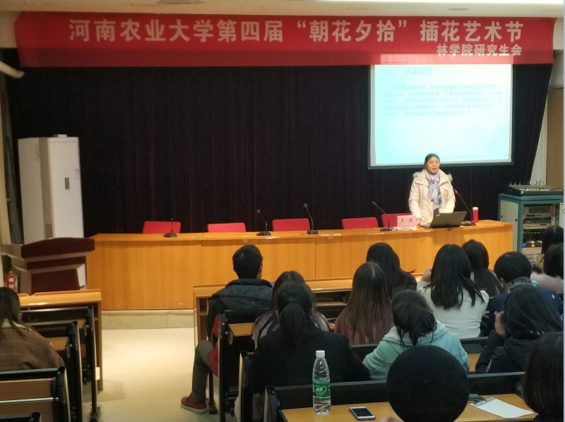 第四届插花艺术节讲座,园林系王献老师应邀担任主讲嘉宾,各院对插花艺术感兴趣的同学们参加了本次讲座。