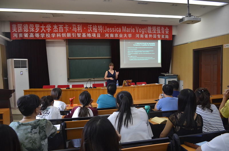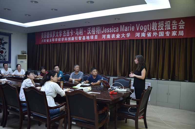 田国行教授邀请,河南省“城乡绿地资源调控与景观生态设计”学科创新引智基地合作专家、美国德保罗大学杰西卡·马利·沃格特(Jessica Marie Vogt)教授莅临我校进行学术交流合作研究。