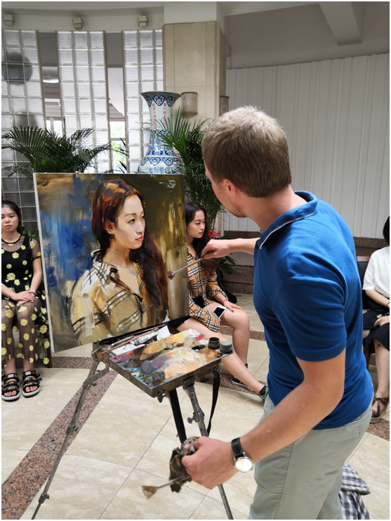 师生全神贯注地观看艺术家们的绘画过程,全场肃然无声,偶尔的窃窃私语都是赞叹。连续作画5个小时后,一位位栩栩如生的女生人像跃然纸上。艺术系主任杨红旗高度评价此次人像示范教学活动,他指出观摩列宾美院师生现场作画,不仅让师生在作画技法上深受启发,而且感受到列宾美院师生对绘画的热爱与孜孜不倦的追求,对我校艺术教育教学注入新的活力和动力,推动艺术教学发展。