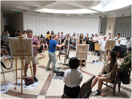 师生进行人像示范教学。艺术家扎实的油画技法,熟练的色彩运用,完美的色彩构图,为H动画
