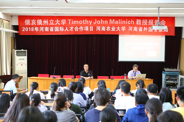 师生作了题为“美国苗圃生产及管理技术现状与发展趋势”的学术报告,详细阐述了美国景观苗木生产中育苗、栽培、养护、肥料使用、管理等中美苗木种植培育全过程的差异。Timothy John Malinich教授在题为“美国苗圃产业培训与推广的现状与发展趋势”的学术报告中,详细介绍了美国苗木产业的教育培训与推广方式,阐述了可持续研究和园艺教育计划发挥的社会、经济、生态功能与未来的发展前景。会议期间,H动画
