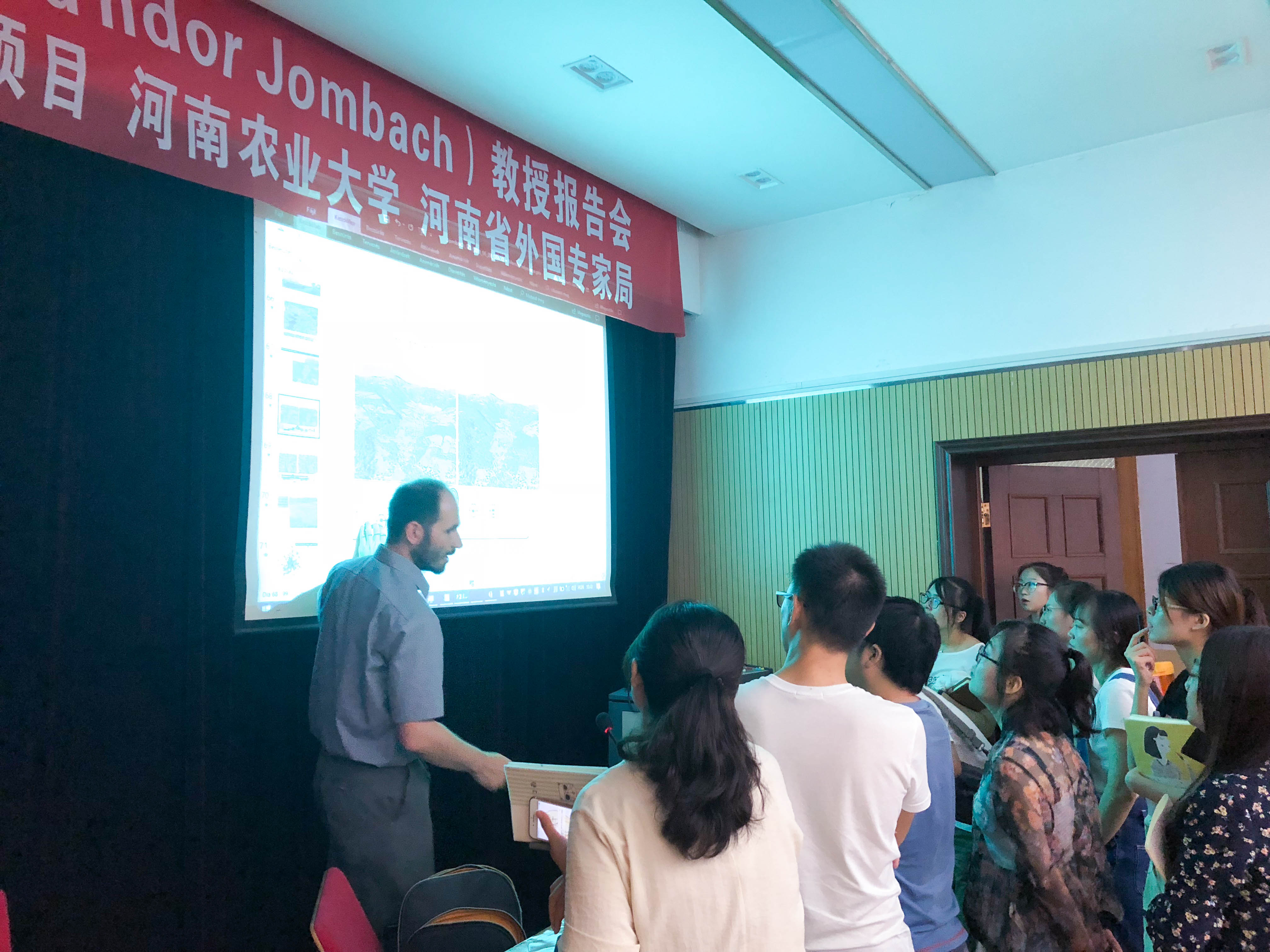 师生踊跃发言,积极讨论,Sándor Jombach教授耐心解惑,为风景园林学信息提取和应用提供了新的思路。田国行教授、何瑞珍副教授主持了学术报告会,对Sándor Jombach教授参与2018年河南省国际人才合作项目、河南省高等学校学科创新引智基地项目表示欢迎,并对Sándor Jombach教授的报告给予高度评价,对师生立项研究、课题学习具有指导意义。