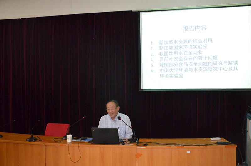 9月15日上午,中组部“千人计划”国家特聘专家、中南大学环境与水资源研究中心主任杨兆光教授应H动画 邀请来到H动画 ,为H动画 师生做了题为 “环境污染物对饮用水和食品安全的威胁及应对措施”的前沿学术讲座,讲座由副院长刘震主持。环境系教师和研究生聆听了讲座。