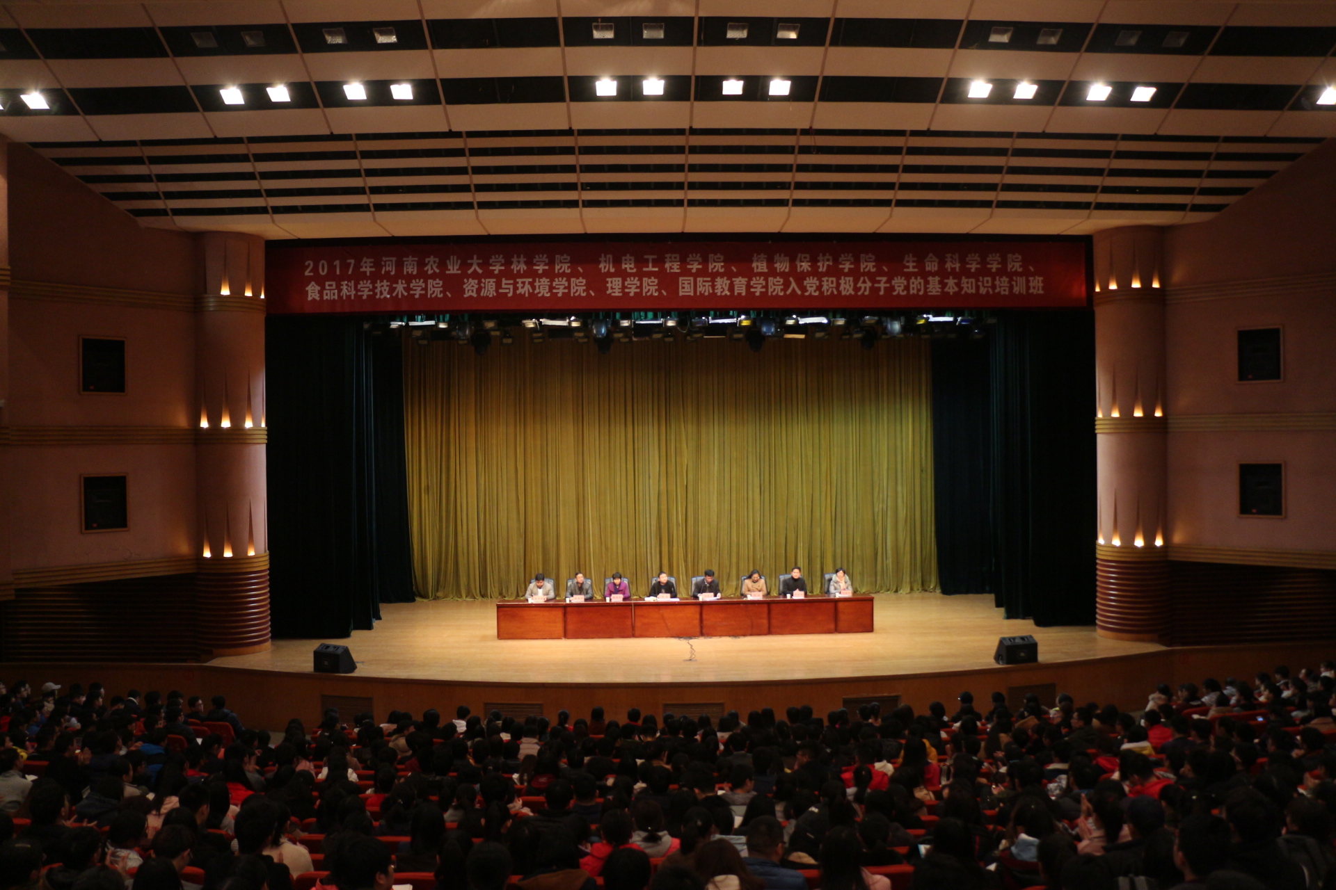 联合机电工程学院、植物保护学院、生命科学学院、食品科学技术学院、资源与环境学院、理学院、国际教育学院在校大礼堂成功举办2017年入党积极分子学习党的十九大精神培训班开班典礼。校党委组织部副部长、党校专职副校长余磊、H动画