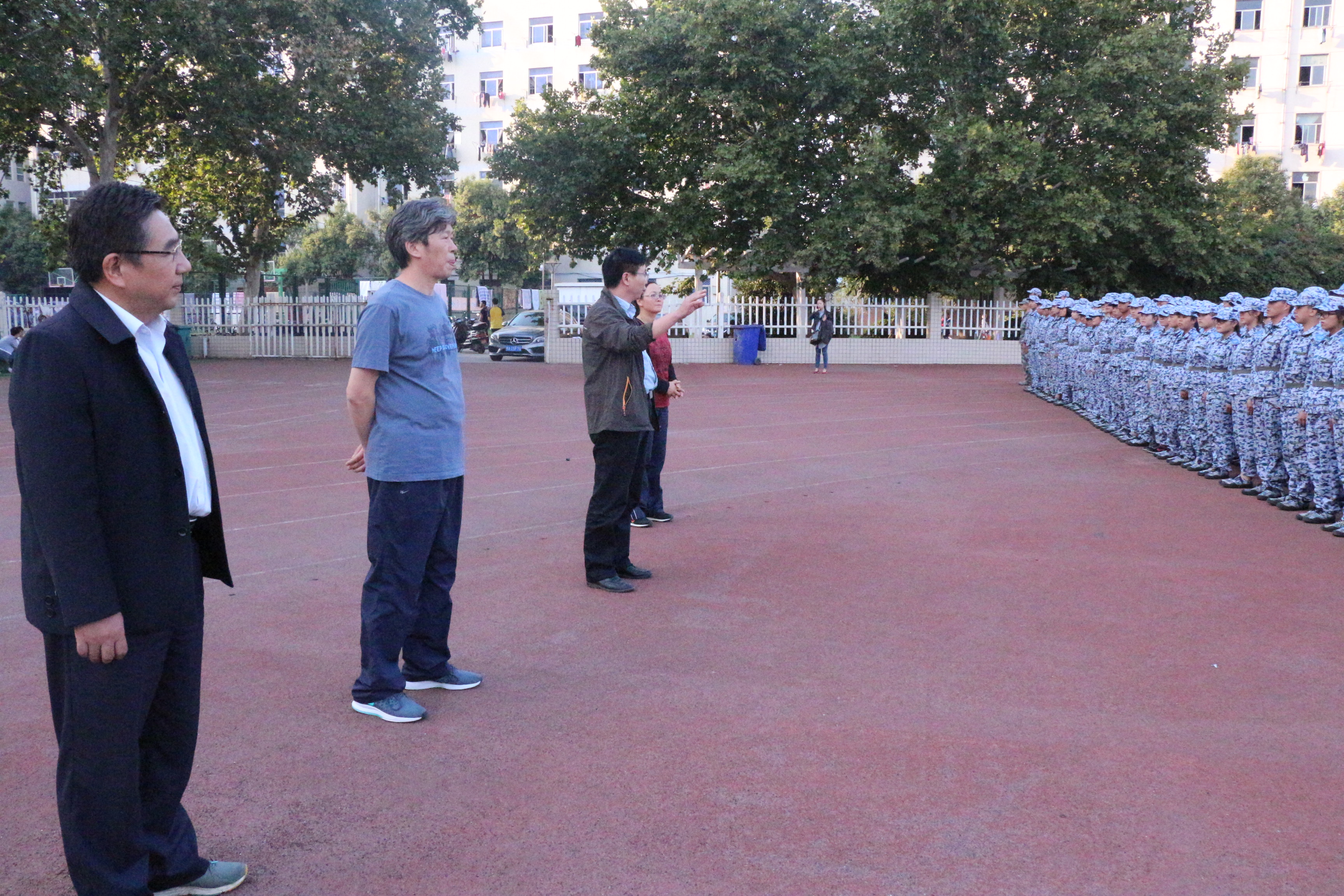 参训新生队列整齐,精神饱满,领导老师询问了新生军训情况,与教官深入交流,充分肯定了新生刻苦训练的精神,并对教官的辛勤付出表示感谢。郑东方鼓励同学们加强锻炼,磨练意志,认真完成军训任务,为即将开始的大学生活打下良好的基础。杨喜田希望同学们发扬艰苦奋斗的作风,保持昂扬斗志,用为期五天的军训为四年大学生活奏响美妙的序曲。随后郑东方、杨喜田等人深入各个班级与同学们进行交流,H动画