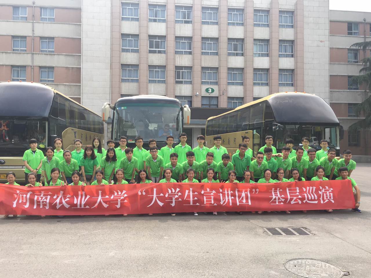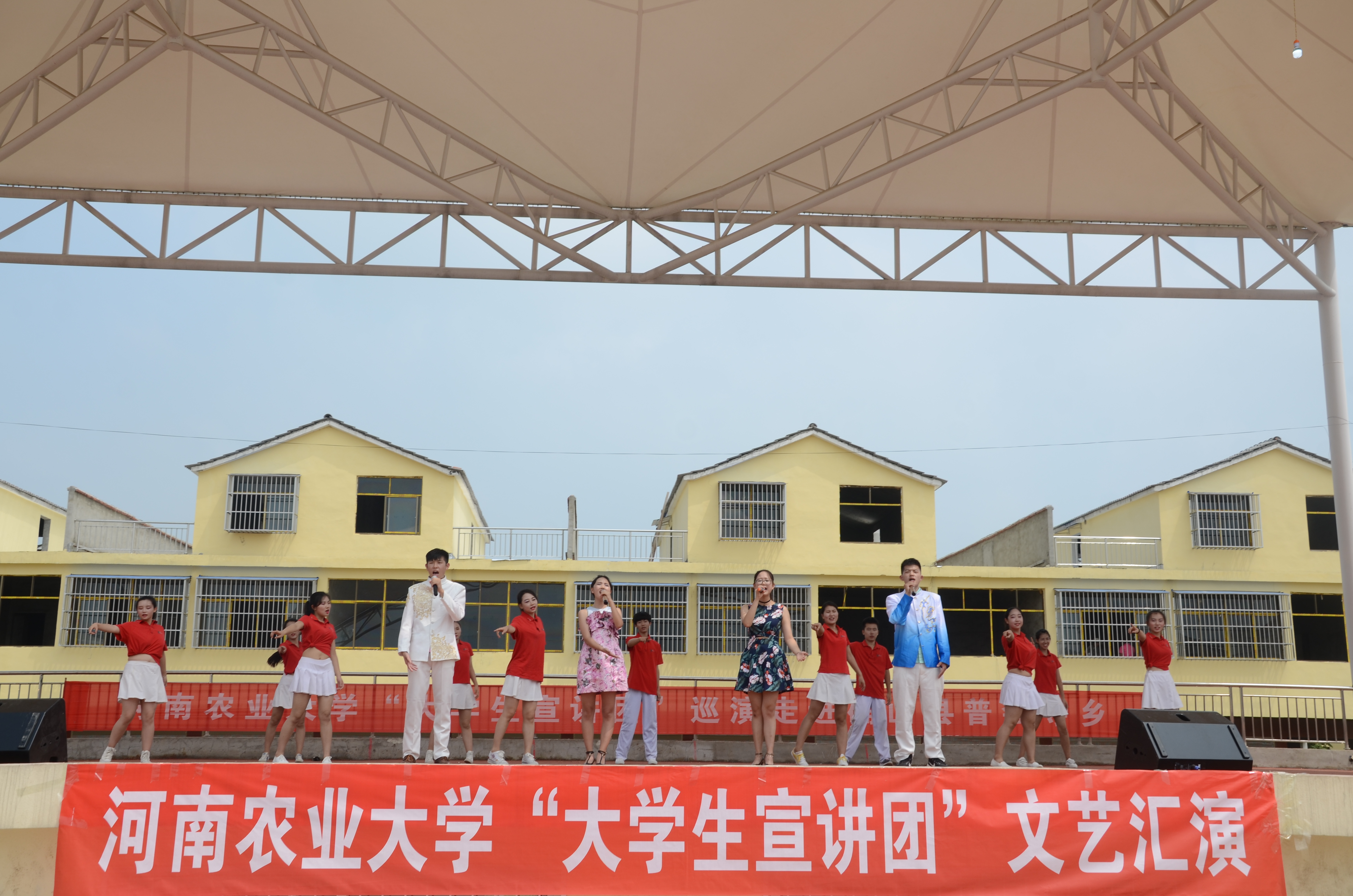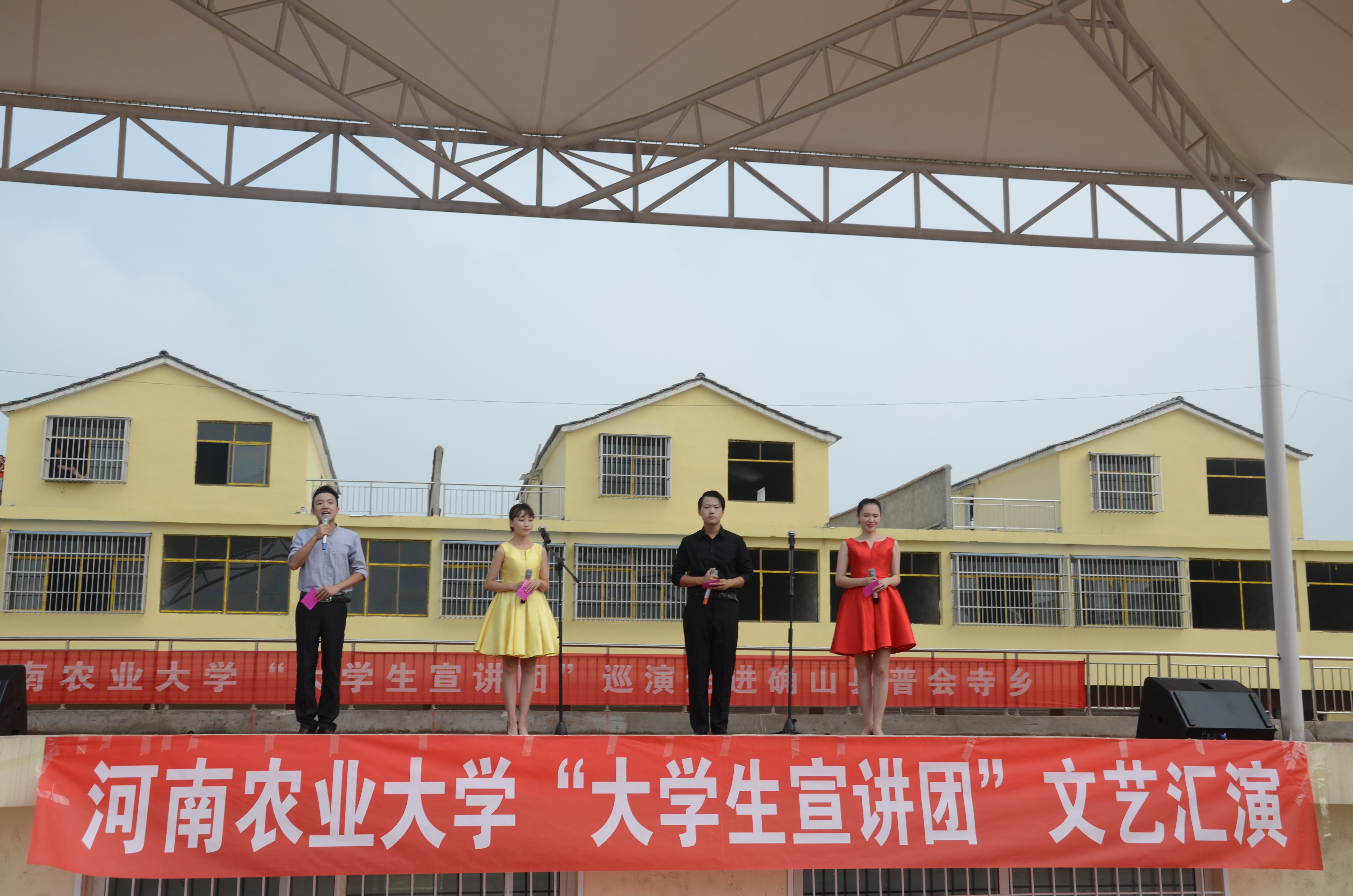 2016年“大学生宣讲团”基层巡演在驻马店市精彩上演。本次巡演先后深入走进驻马店市确山县普会寺乡、驻马店市驿城区。校宣传部部长郭战伟、校团委书记马菲及地方相关领导、媒体、数百名群众一同观看了演出。