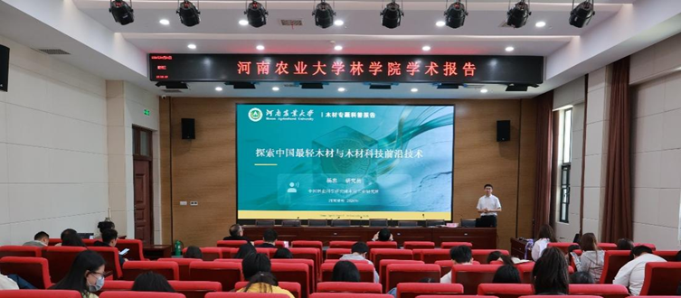 杨忠以探索中国最轻木材与木材科技前沿技术为题,分享了轻质木材、木材功能改良、木材涂料与涂装等领域的最新研究进展。他结合多年科研实践与国际访学经历,介绍了木材科学前沿技术、标准研制及成果转化应用,内容兼具科学性与科普性,拓宽了师生学术视野。