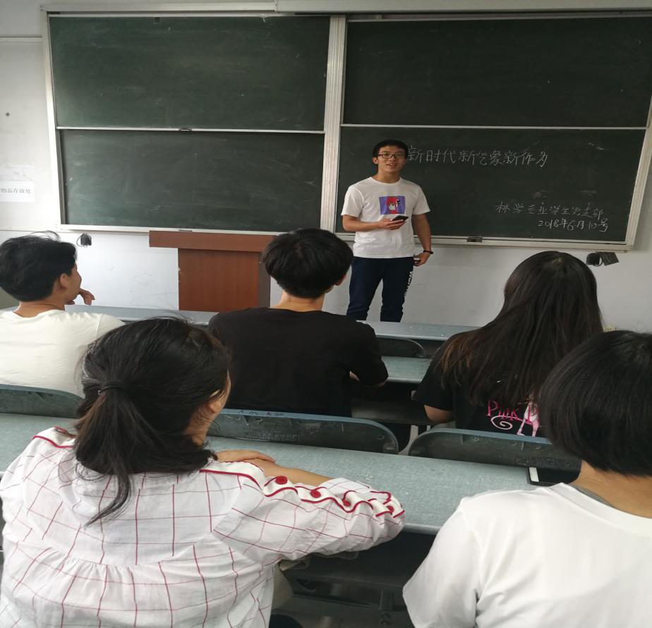 6月10日,林学专业学生党支部召开了以“新时代新气象新作为”为主题的党日活动。通过对习近平主席讲话的学习,深刻认识到新时代要有新气象,更要有新作为。中国正处于伟大历史转折点.这种内心的感知,让许多人都变得更为自信起来.新时代,新气象、这样的气象,由自信的执改党、自信的中国人民一起书写。作为一名党员更应起到模范带头作用,不断努力前行。