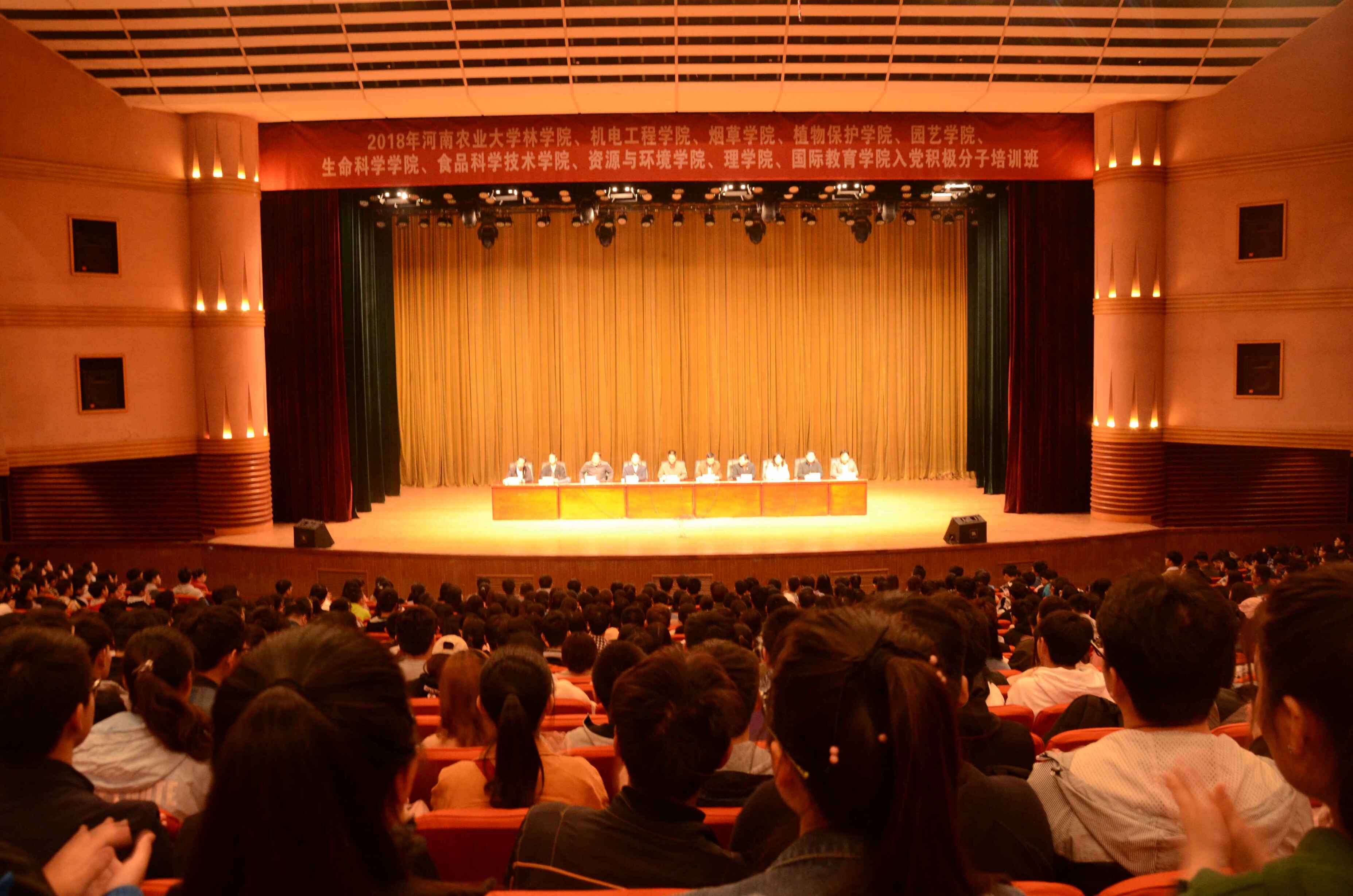 根据校党委组织部《关于举办学生党员、入党积极分子培训班的通知》(校组〔2018〕28号)的精神,按照校党委党课培训的工作部署,11月4日上午8:30,由H动画 牵头举办的文化路校区2018年入党积极分子培训班在校大礼堂隆重开班。校党委组织部副部长侯金超、H动画 党委书记郑东方、机电工程学院党委书记李世欣、烟草学院党委书记李平、园艺学院党委书记耿超明、生命科学学院党委书记陈玲、食品科学技术学院党委书记杨喜洲、资源与环境学院党委书记毕庆生、植物保护学院党委副书记王宏立、理学院党委副书记李兴旺出席了本次开班典礼。1328名入党积极分子参加了此次培训,会议由郑东方主持。