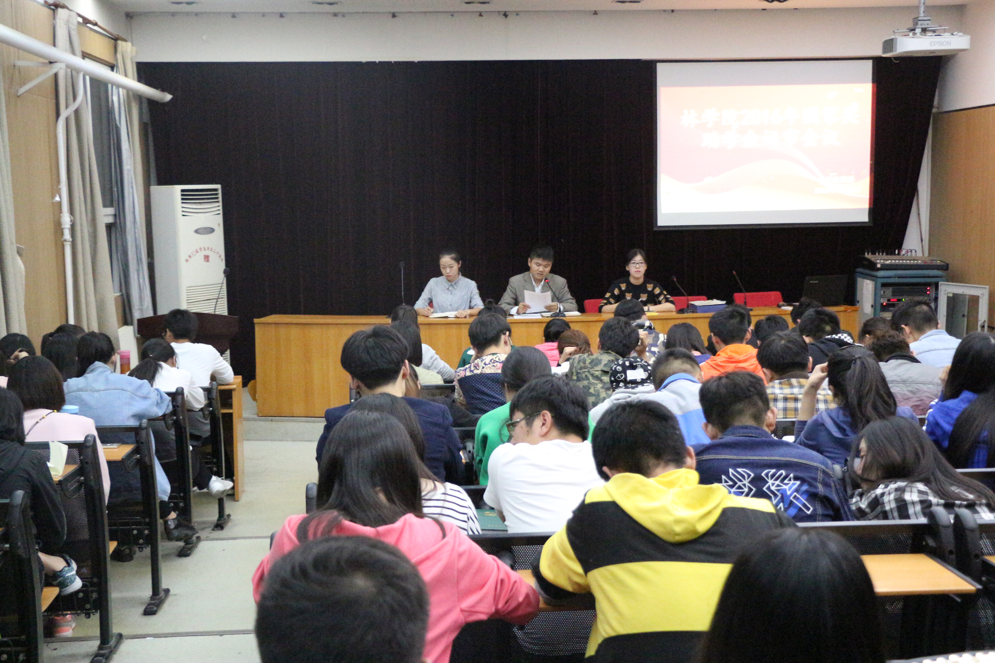 奖助学金评选工作会。院团委书记张保磊、团委副书记姜鑫、辅导员郭睿出席了本次会议,全体班长支书及2016级新生助理班主任参加了此次会议。