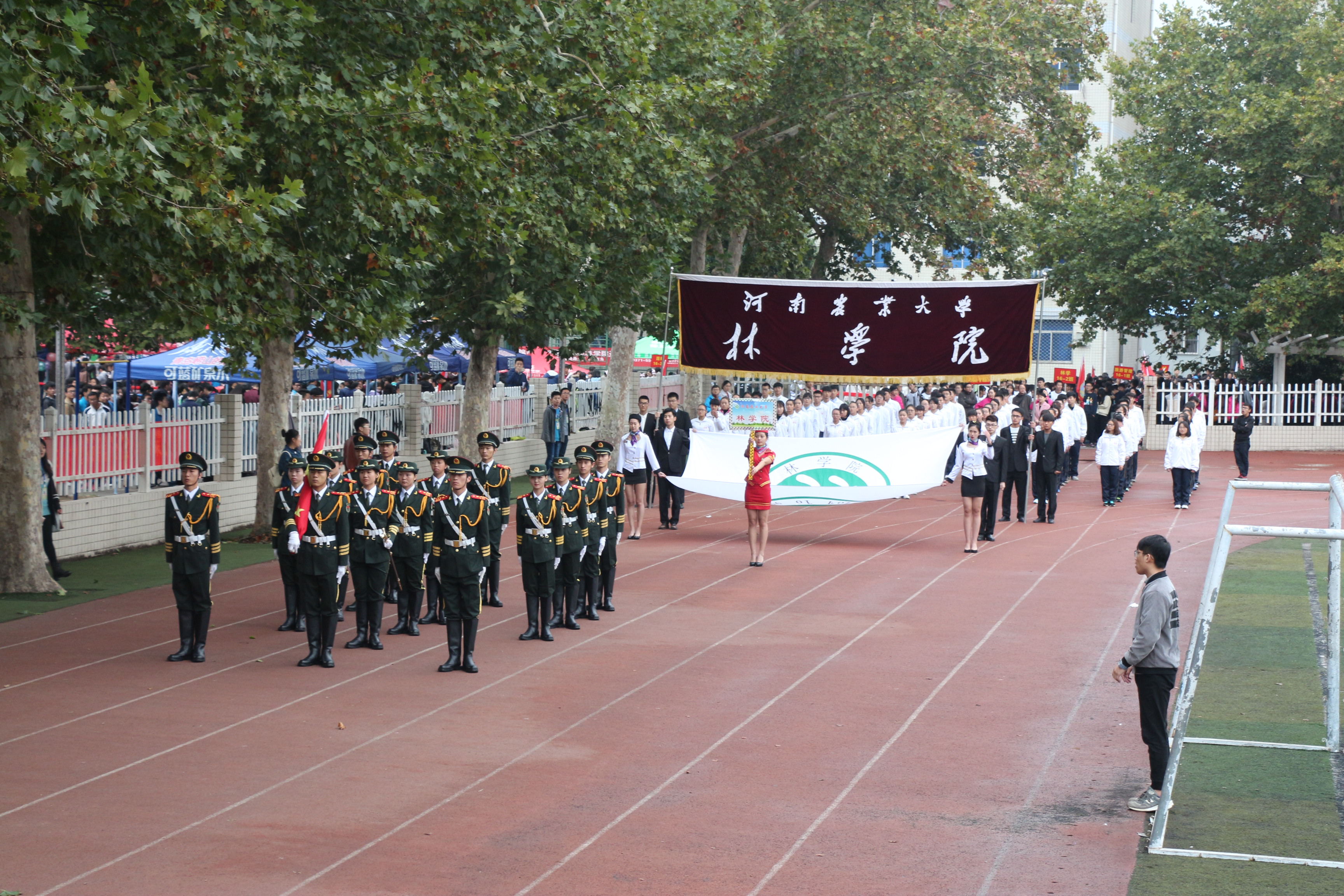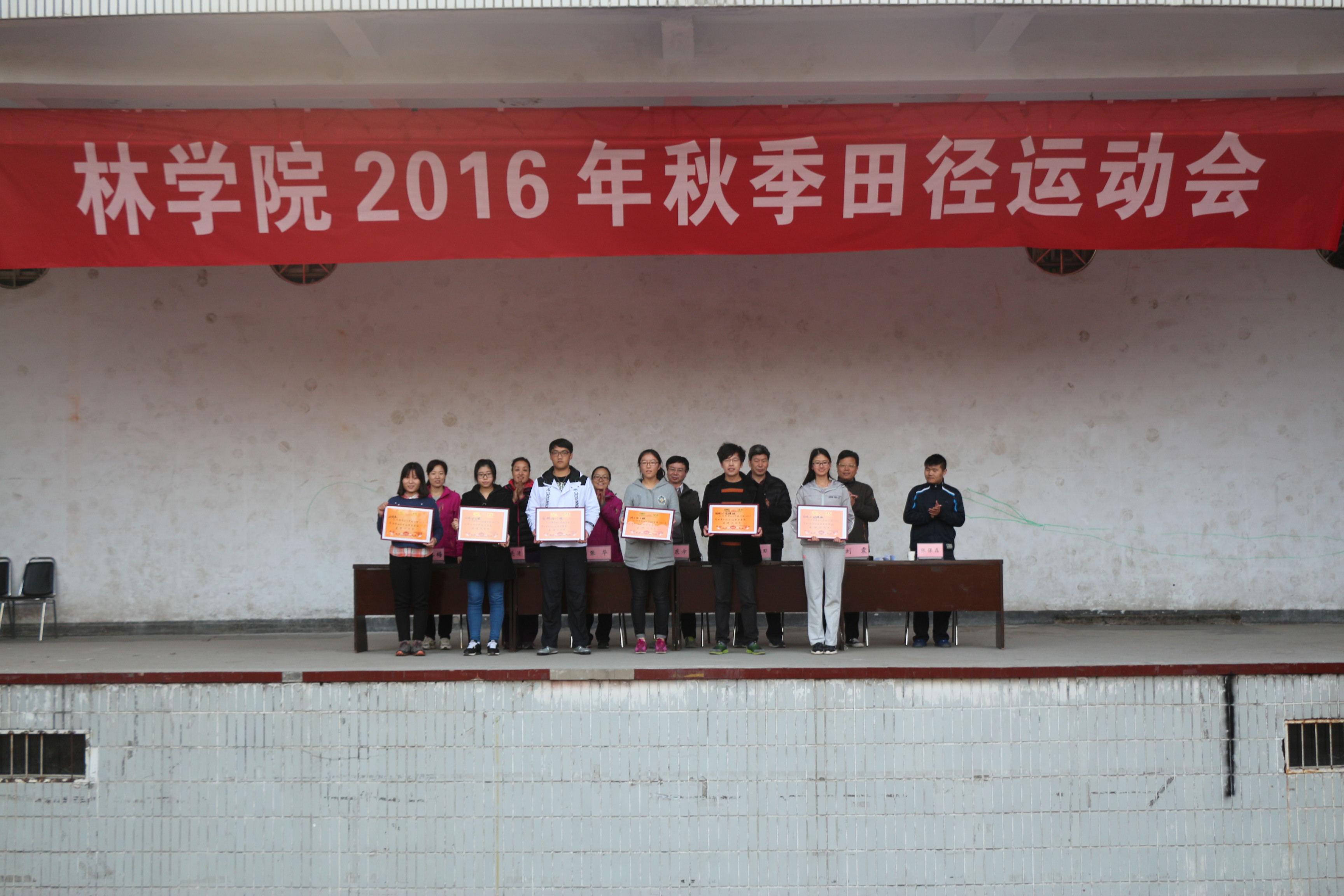 金秋送爽,丹桂飘香,H动画 师生喜迎2016年秋季田径运动会。10月29日,在全院师生贯彻习近平总书记系列重要讲话精神,积极响应学校“三大教育”学生思想素质教育的氛围和大力弘扬“三走”活动的浓厚气氛中,H动画 在校体育场隆重举办2016年秋季田径运动会。院党委书记郑东方、院长杨喜田、院党委副书记张华、副院长刘震、林学系副主任何静、园林系副主任刘保国、环境系主任赵勇、艺术系主任杨红旗出席了开幕式。开幕式由张华主持。 上午8时,伴随着振奋人心的乐曲,田径场上锣鼓喧天,彩旗飘扬,运动会开幕式准时开始。彩旗方阵,各系、班、研究生代表队以及各系老师和院办、团委老师组成的75个方阵依次入场。随风飘扬的彩旗,昂首挺胸的队员,彰显出H动画 的优秀的精神风貌;各专业方阵迈着整齐的步伐从主席台前走过,接受校、院领导的检阅,他们精神饱满,口号嘹亮,步伐统一,成为田径场上一道亮丽的风景线。 院长杨喜田为院运会致开幕词。他首先代表H动画 表达了对一贯关心H动画 发展以及出席此次开幕式的校领导的热烈欢迎,同时对给予本届运动会以大力支持和帮助的体育学院的老师表示诚挚的谢意和为筹备本届运动会而付出辛勤劳动的广大教职工生以最亲切的问候。杨喜田表示H动画 举办田径运动会,是为了贯彻落实全民健身计划,他希望全体运动员都能以饱满的激情、昂扬的斗志、勇于拼搏的信念、团结向上的精神投入到本届运动会中去,秉承“更高、更快、更强”的奥林匹克精神,赛出技术水平,赛出道德风尚,赛出个性风采,用自己的实际行动推动学院“大志、大爱、大雅”主题目标教育活动深入开展。随后参加过两届校运会、三届院运会的运动员黄慧双表全体运动员宣誓:在运动会的各项比赛中,严格遵守运动员守则,听从指挥,服从裁判;公平竞争,积极进取;奋力拼搏,争创佳绩! 裁判们也表示将会做到公平公正公开,圆满完成各项工作。 上午9时,院党委书记郑东方宣布“H动画 2016年秋季田径运动会开幕”。随着一声枪响,运动场上的掌声欢呼声骤然而起,男子100米的发令枪声依旧拉开了此次运动会的序幕。赛场上,运动健儿们挥洒着激情与汗水,不断的超越自我、勇往直前,随着比赛的激烈进行,场下的观众也深受感染、热情高涨,一句句加油呐喊,一阵阵擂鼓助威,一遍遍鼓掌摇旗,都凝聚着“团结奋进”的精神,使运动员们深受鼓舞,斗志昂扬;老师们也不甘示弱,垒球掷准、定点投篮、飞镖、企鹅摇摆、趣味排球赛、运球投篮接力等丰富精彩的比赛成为运动赛场上的另一道独特的风景。裁判员们严格遵守竞赛规则,公正判决;后勤人员工作勤恳,一丝不苟。院运会在紧张而激烈的气氛中有序开展。 本次运动会共设有25个学生项目,6个教职工项目,共有75个代表队参加,运动员近1200人,本次运动无论是参加的人数之多,还是规模之大都充分展现了H动画 师生蓬勃欲发的活力和朝气,和对生活的热爱。经过一天紧张而激烈的角逐,各参赛队取得了优异的成绩。2016级环境工程1班在团体总分评比中勇夺桂冠,2016级园林4班、2016级旅游管理2班、2016级林学3班、2016级城乡规划1班,2016级林学4班跻身总分前六名。此外,还有2016级园林2班、2016级园林绍骙班,2016级环境工程1班、2015级园林绍骙班、2014级园林1班、研究生团体共6个团体荣膺了“体育道德风尚奖”。在本次比赛中更是涌现出了一大批运动健儿,为学院体育竞赛队伍注入了新鲜血液,为H动画 备战第49届校运会注入了新的力量。学院领导老师为获得各类奖项的集体和个人颁发了奖状及奖品。随后,副院长刘震致闭幕词,并在全院师生的热烈欢呼声中宣布H动画 2016年秋季田径运会圆满落下帷幕!